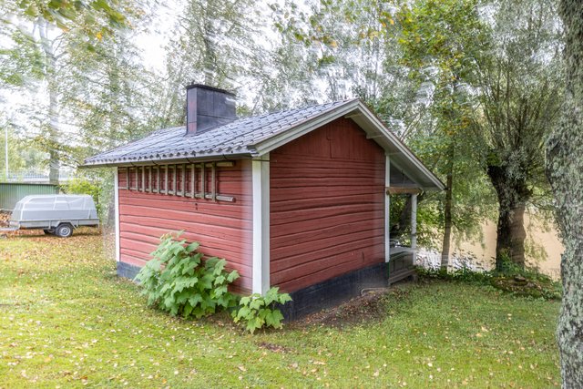 Tontti on oma ja sen pinta-ala on 1500 m², mikä tarjoaa runsaasti tilaa puutarhanhoitoon tai lasten leikeille. Lisäksi pihamaalta löytyvät erillinen kahden auton autotalli, kesähuone sekä puuvarasto. Päärakennuksen alakerrassa on vielä yksi autotalli huoltomontulla, joten autoharrastajalle ja tee-se-itse- karpaasille täydelliset työtilat. Taloon kuuluu myös yhteiskäytössä oleva rantasauna, joka sijaitsee kauniin joen rannalla – täydellinen paikka viettää kesäpäiviä.
