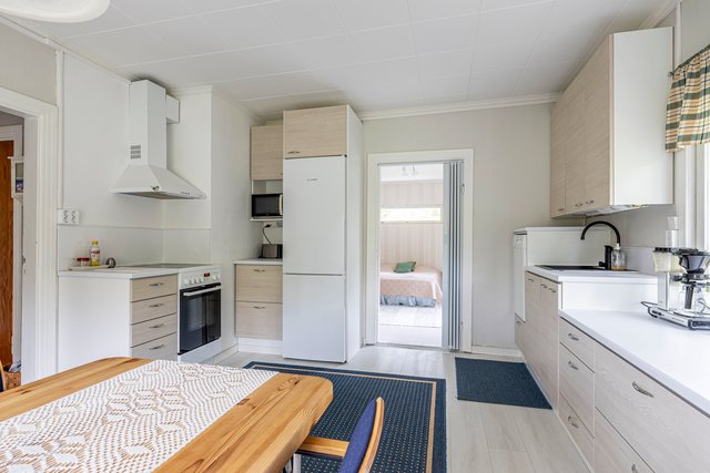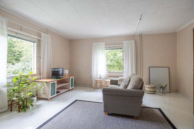 - Ei tarkistusmitattu. Pinta-alat saattavat tämän ikäisissä kohteissa (rekisteröity ennen 01.01.1992) poiketa olennaisestikin asuinrakennusten nykyisten mittaustapojen ja standardien (SFS 5139) mukaan laskettavasta asuintilojen pinta-alasta. Pinta-ala voi siis olla edellä mainittua pienempi tai suurempi. Pinta-alatieto on rakennusvalvonnan rakennus- ja huoneistorekisteriotteesta ja pinta-alatieto on huoneistoala. Talon alkuperäisiä lupakuvia ei löydy ja niitä ei ole myyjällä eikä rakennusvalvonnalla.
