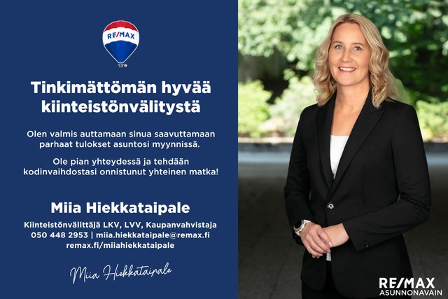 Tätä asuntoa myy Miia Hiekkataipale, Kiinteistönvälittäjä LKV, LVV, Kaupanvahvistaja