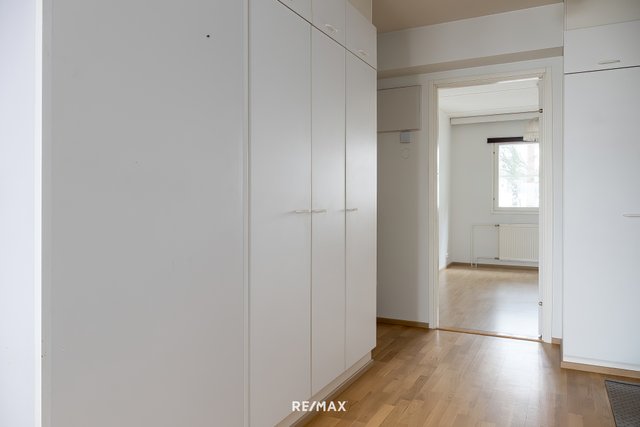 Ylimmän kerroksen kodissa on oma rauhansa ja hyvä pohjaratkaisu. Keittokomerossa kaikki kompaktisti käden ulottuvilla ja ruokapöydän saa hyvin olohuoneen yhteyteen. Kodinkoneet on vastikään uusittu, joten isoja hankintoja niiden osalta ei tarvitse tehdä. Tilava kylpyhuone on remontoitu yhtiön toimesta 2014 ja oma sauna kruunaa kokonaisuuden.