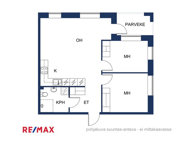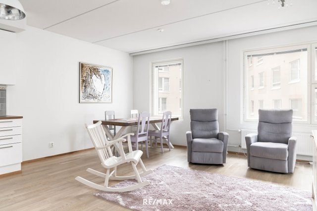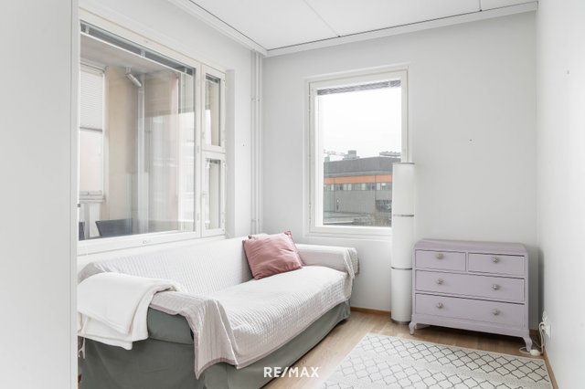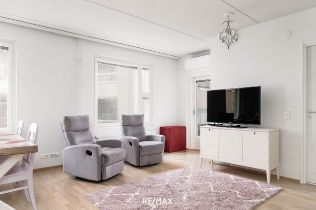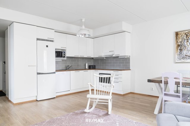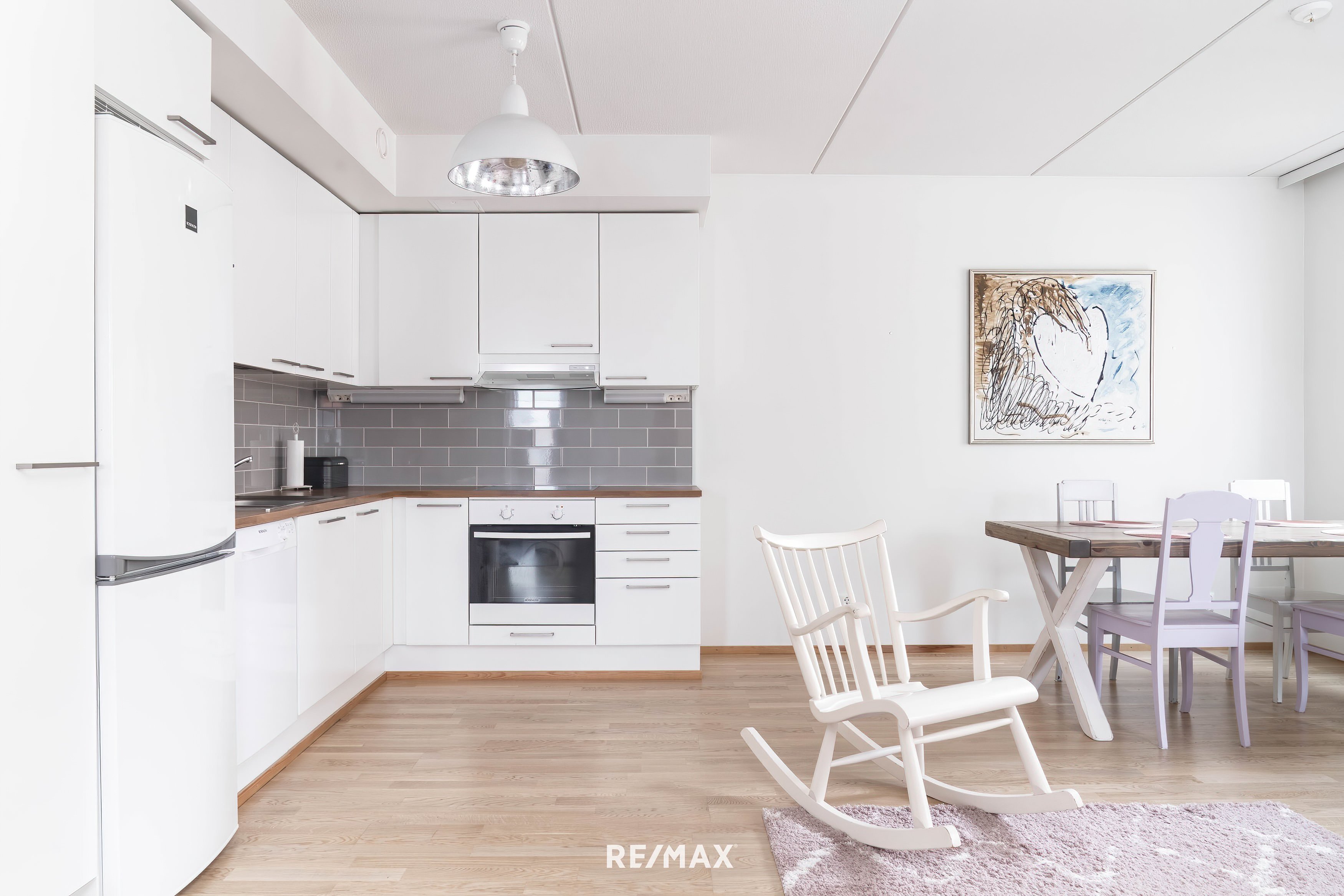 Tilan keskiössä on avoin olohuone ja keittiö, jotka yhdistyvät toisiinsa luonnollisesti. Keittiö on ajattoman vaalea ja varusteltu hieman perustasoa parantavalla induktioliedellä sekä tyylikkäällä kontrastia tuovalla välitilakaakelilla. Olohuoneesta pääset suoraan omalle parvekkeelle, jossa on helppo hengähtää ja seurata kasvavan Porvoon Taidetehtaan tapahtumia.