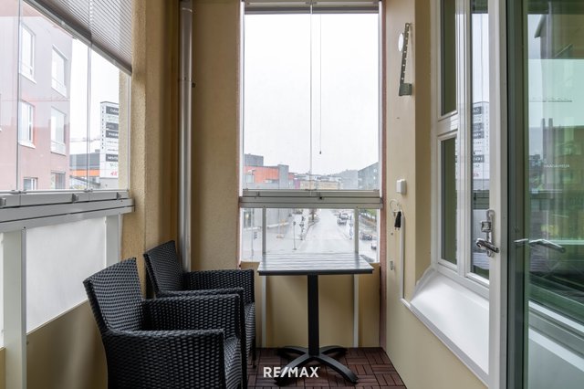 - - Lasitetulle parvekkeelle on asennettu sälekaihtimet sekä puulaattalattia. - Parvekekalusteet neuvoteltavissa