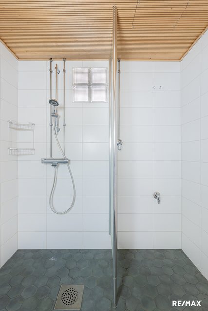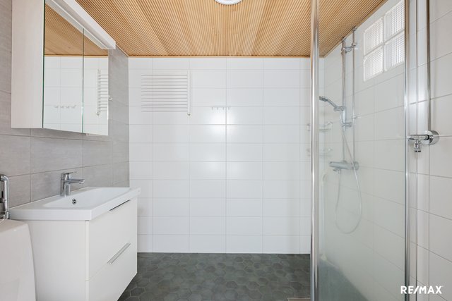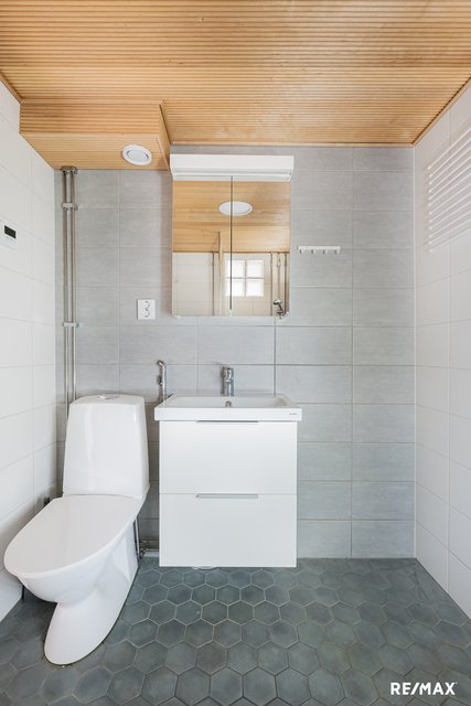 - Kylpyhuone saneerattu taloyhtiön linjasannerauksen yhteydessä. Lattia- ja seinäpinnat laattaa, suihku, suihkuseinä, allas, wc -istuin, bidee -suiku, peilikaappi, allaslaatikosto, pesukoneliitäntä. Lattialämmitys.