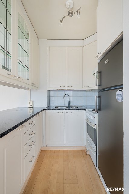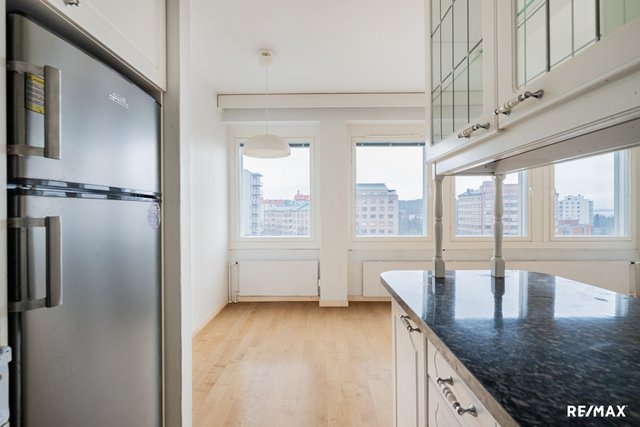 Asunto sijaitsee seitsemännessä kerroksessa muutaman porrasaskelman päässä talon kattoterassilta. Huoneiston keittiö ja olohuone ovat yhtenäistä tilaa, erillinen eteinen - josta käynti kodin kylpyhuoneeseen. Makuuhuoneessa mukavasti säilytystilaa.