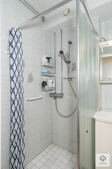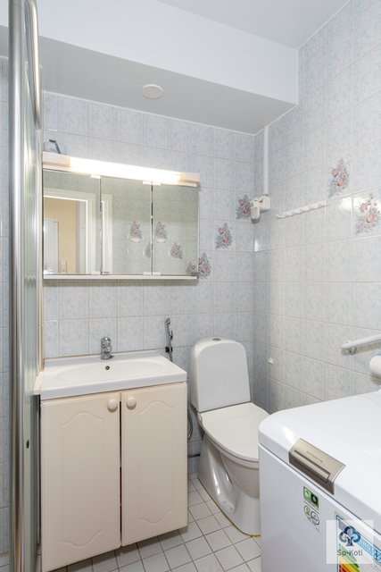 - WC-istuin, suihku, pesukoneliitäntä, peilikaappi, allaskaappi, bidee-suihku, ja suihkuseinä