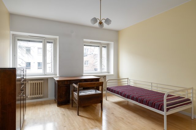 Asunto sijaitsee toisessa kerroksessa hissillisessä talossa, ja sieltä on näkymät sekä sisäpihalle että Aleksanterinkadulle. Kaksi makuuhuonetta tarjoavat tilaa perheen tarpeisiin, ja säilytystilaa löytyy runsaasti vaatehuoneen ja muiden varastotilojen ansiosta. Seinäpaksuudet ovat massiiviset ja ikkunalaudalle mahtuu halutessaan myös istumaan.