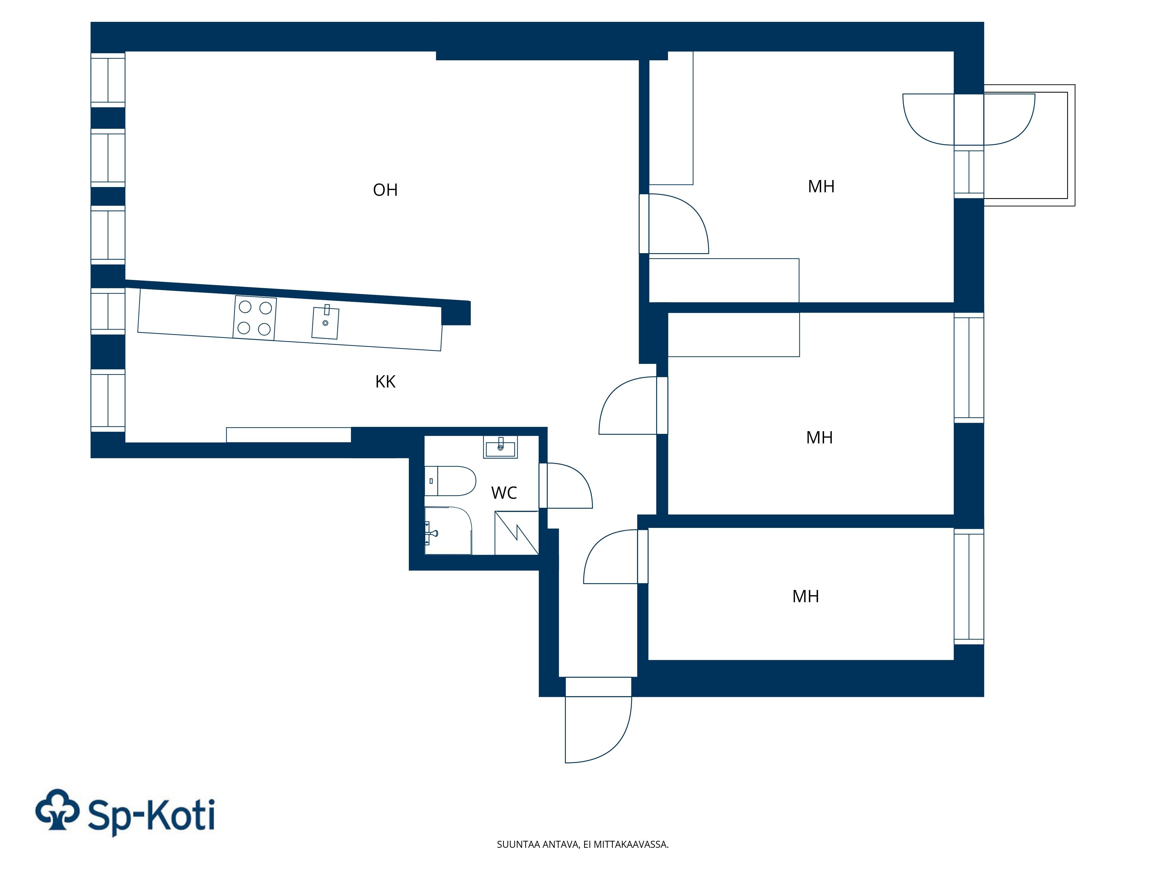 - Ei tarkistusmitattu. Pinta-alat saattavat tämän ikäisissä kohteissa (yhtiö rekisteröity ennen 01.01.1992) poiketa olennaisestikin asuinrakennusten nykyisten mittaustapojen ja standardien (SFS 5139) mukaan laskettavasta asuintilojen pinta-alasta. Pinta-ala voi siis olla edellä mainittua pienempi tai suurempi.