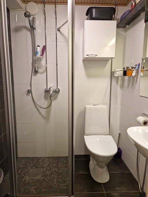 - Suihku, pesukoneliitäntä, peili, ja wc-istuin