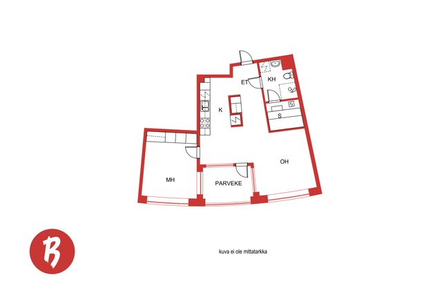 - Huoneiston viherhuone/parveke ei sisälly yhtiöjärjestykseen merkittyyn pinta-alaan.