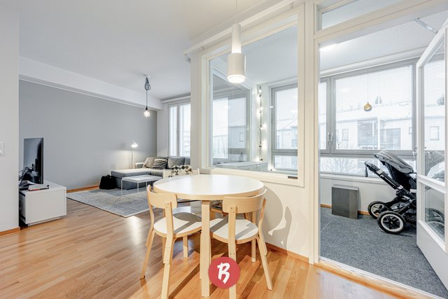 Valoisa ja mukavan mallinen asunto jossa erikoisuutena sisäänrakennettu viherhuone / parveke joka antaa lisää tilaa ympäri vuoden. Hyvin hoidettu taloyhtiö hissitalossa omalla tontilla.