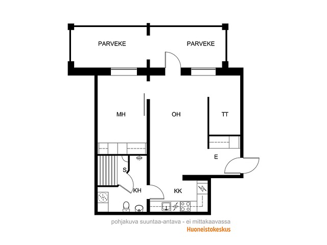 - Virallinen huonejärjestelmähän on 2h+k+s, mutta työtila/lasten leikkitila tms. olohuoneen jatkeena/takana on loistava lisätila, eli käytännössä kyseessä pieni kolmio!
