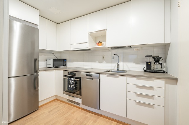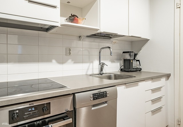 - Kaapisto: Valkoinen laakaovi, laminaattitasot, välitilalaatoitus. Kodinkoneet: Jääkaappi/pakastin, induktioliesitaso, erillisuuni, liesituuletin, astianpesukone. Lattia parkettia, seinät maalattu.