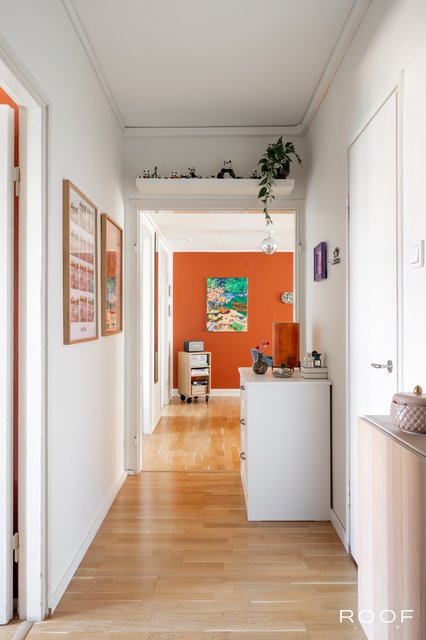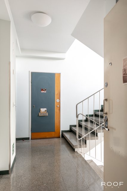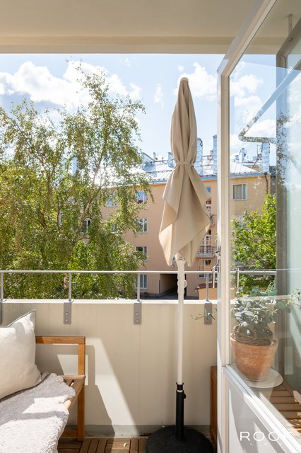 Tervetuloa tutustumaan tähän ihastuttavaan viidennen kerroksen kotiin, joka sijaitsee aivan vehreän Dallapénpuiston kupeessa. Tämä läpitalon asunto on valoisa ja avara, sillä ikkunat avautuvat kahteen suuntaan. Toimiva pohjaratkaisu tekee kodista käytännöllisen ja muuntautumiskykyisen. Kahden erillisen makuuhuoneen ansiosta tilaa riittää niin perheelle, pariskunnalle kuin vaikka kotona työskentelevälle.