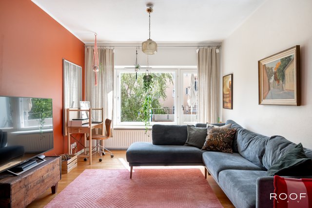 Kodin sydän on avara olohuone, joka kutsuu rentoutumaan ja viettämään aikaa yhdessä. Tänne mahtuu helposti suurempikin ruokailuryhmä. Olohuoneen jatkeena on pieni, sisäpihalle avautuva viihtyisä parveke, jossa on mukava nauttia aamukahvit tai hengähtää päivän päätteeksi.