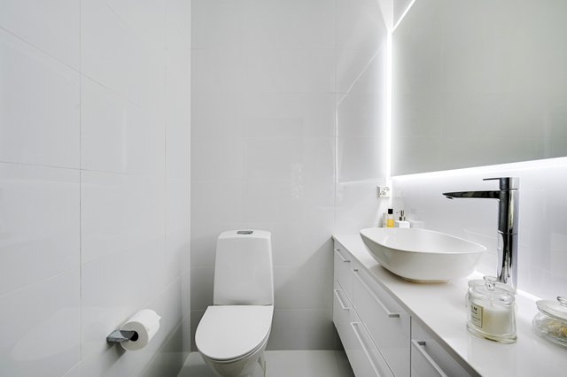 - WC-istuin, suihku (2 x sadesuihku), pesuallas, ja lattialämmitys
