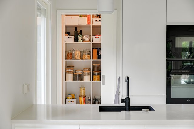 - Petra keittiöiden kiintokalusteet. Kodinhoitohuoneen yhteydessä vaatehuone.