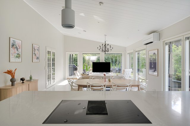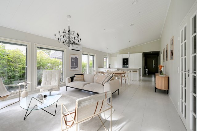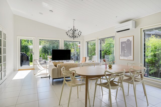 - Upea ja valoisa, todella tilava olohuone yhdistyy saumattomasti ruokailutilaan ja avokeittiöön, muodostaen avaran kokonaisuuden.