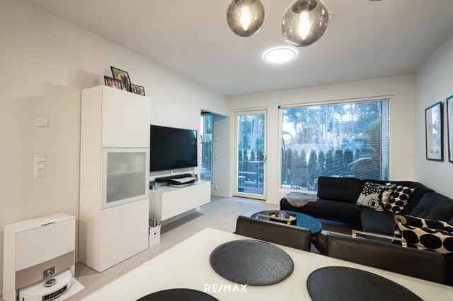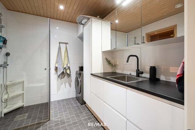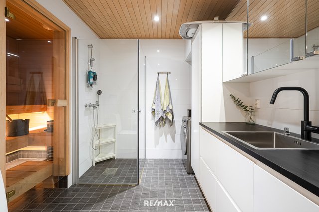 Asunnossa on kaksi reilunkokoista makuuhuonetta, ja erittäin avara sekä avoin oleskelutila yhdistettynä keittiöön luo tilavan kokonaisuuden, joka tuntuu ja näyttää luksuksellisen kodikkaalta. Reilun kokoinen, tyylikkäästi sekä käytännöllisesti toteutettu kylpyhuone ja oma sauna tuovat arkeen ripauksen ylellisyyttä ja hemmottelua. Tähän kotiin mahtuu lisäksi vielä erillinen wc, jossa on runsaasti kaappi ja säilytystilaa arjen sujuvuutta tukemaan.