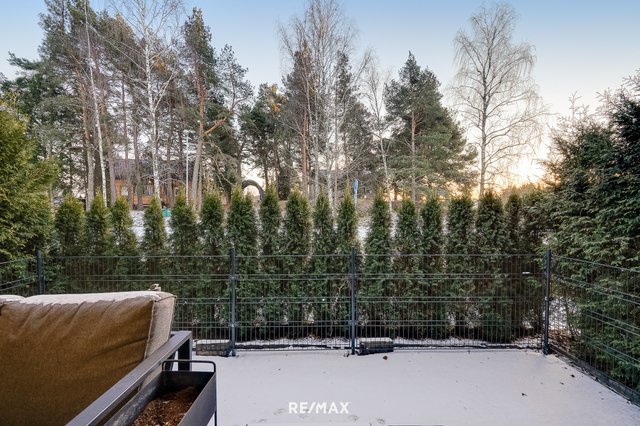 Oleskelutilasta on käynti viihtyisälle terassille ja tuija-aidatulle takapihalle, jossa kesäillat on helppo viettää rauhassa rentoutuen ja ympäristöstä nauttien. Takapihan maa-alue on päällystetty tekonurmella, ja pihaa ympäröi lisäksi noin metrin korkuinen metalliaita.
