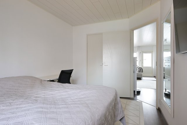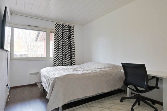Asunnon kaksi makuuhuonetta ovat hyvänkokoisia. Päämakuuhuoneeseen mahtuu hyvin myös työpiste ja toisessa makuuhuoneessa on tilaa esimerkiksi lastenhuoneelle, vierashuoneelle tai kotitoimistolle. Säilytystilaa löytyy käytännöllisen vaatehuoneen sekä kaapistojen ansiosta. Lisäksi ulkovarasto tuo kätevää lisätilaa tavaroille.