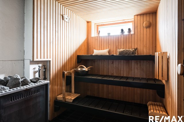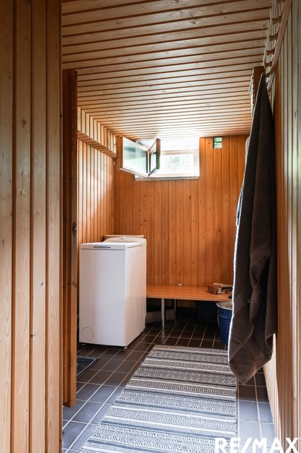 Kellarikerroksessa puolestaan on perinteikäs puulämmitteinen sauna, suihkutila sekä runsaasti varastotilaa harrastuksille ja säilytykselle.