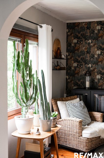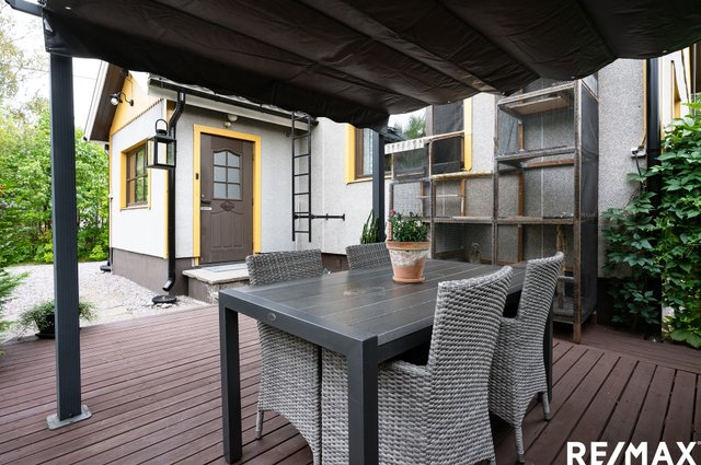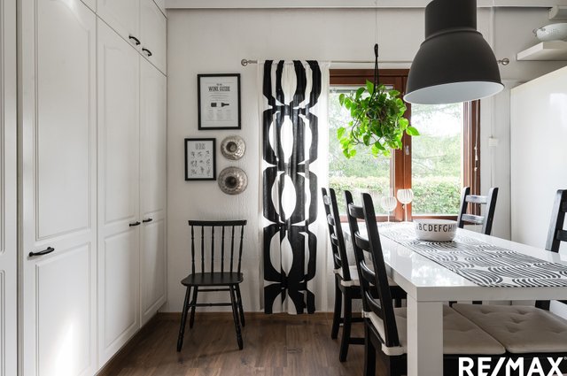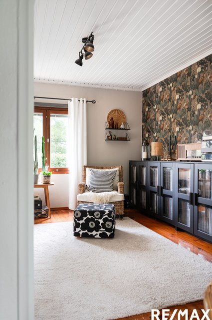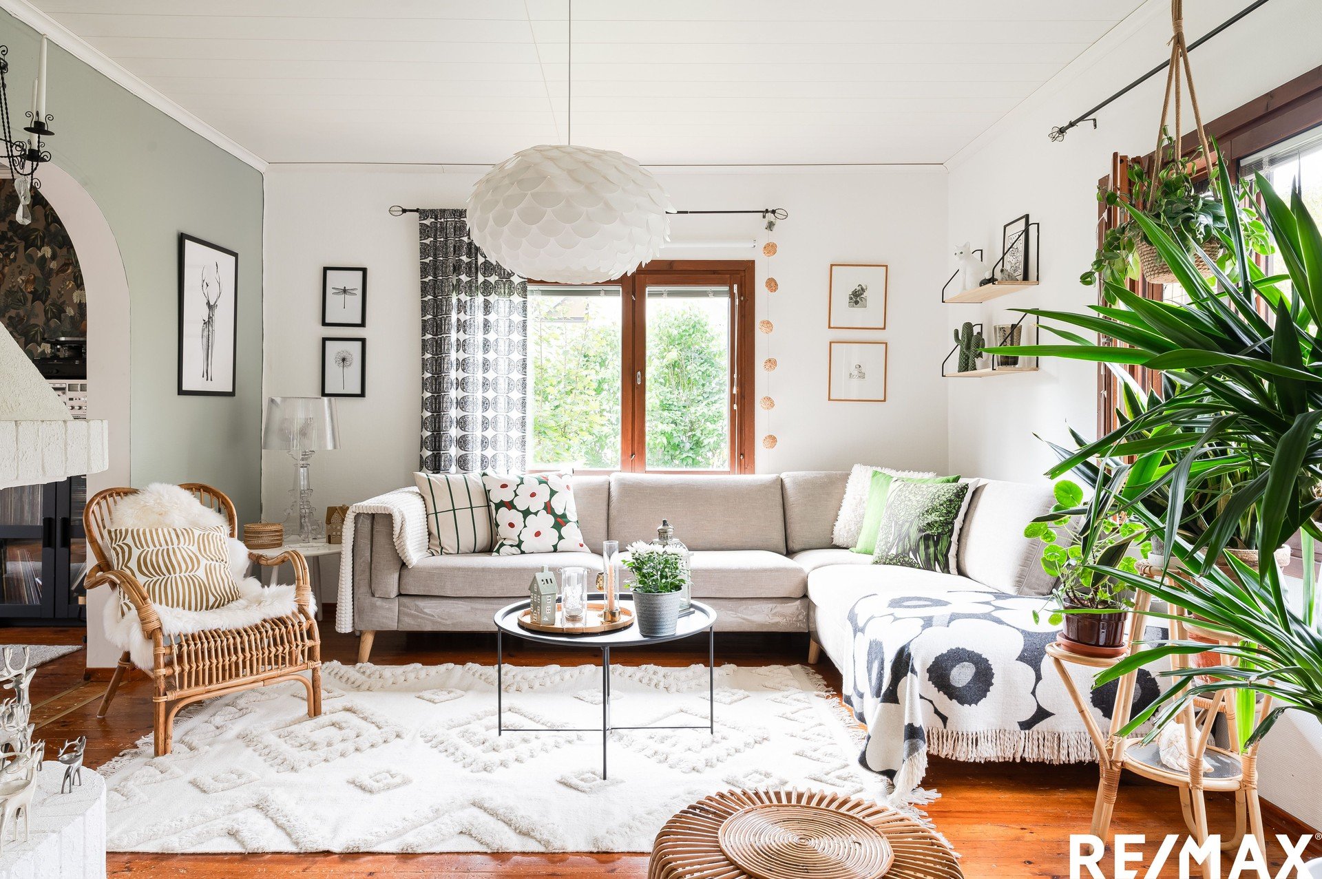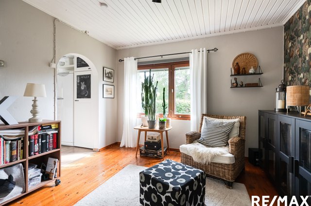 Tervetuloa tutustumaan tähän lämminhenkiseen 1950-luvulla rakennettuun kotiin, joka sijaitsee omalla isolla 1440 m² tontilla. Tontti rajoittuu takarajalta puoistoalueeseen.