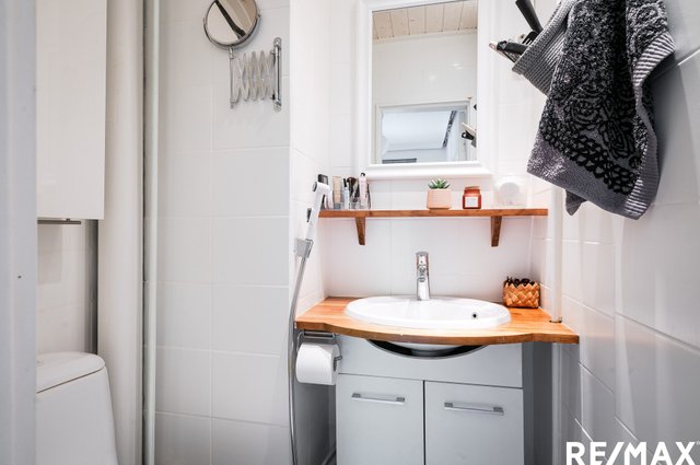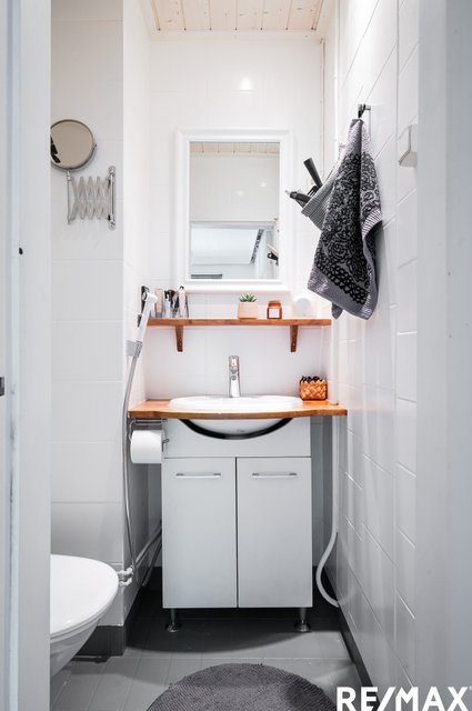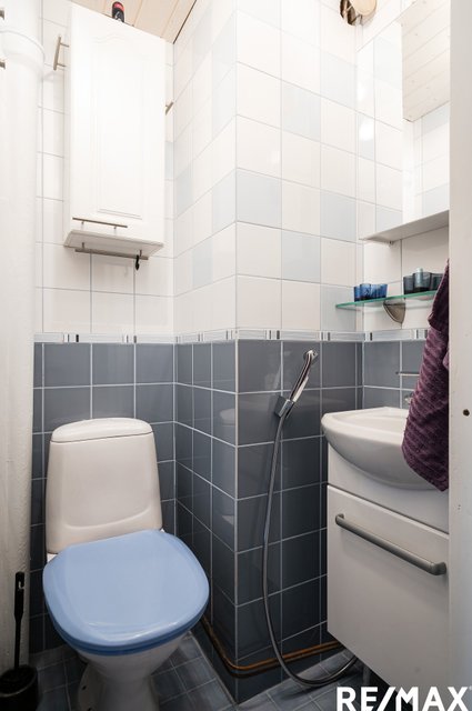 - Peili, allas, allaskaappi, wc-istuin, bidee, Lattia: laatta, Seinät: laatta