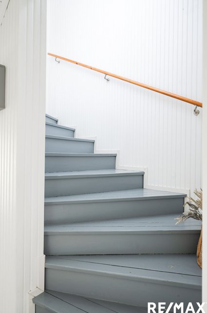 2018 Portaikon remontti: poistettu mäntypaneelit ja otettu esielle alkupeärinen paneli, joka maalattu.