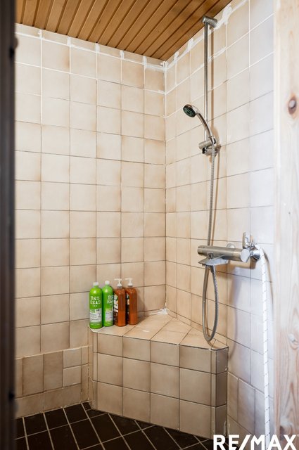 - Saunasta käynti tilaan jossa suihku. Lattia: laatta, Seinät: laatta