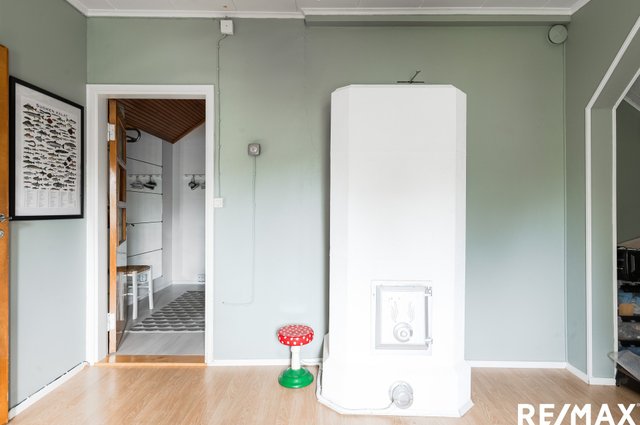 - Kaksi sähkövastuksilla toimivaa takkaa 1. kerroksessa ja yksi yläkerrassa. Kellarissa kamina.