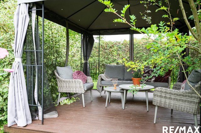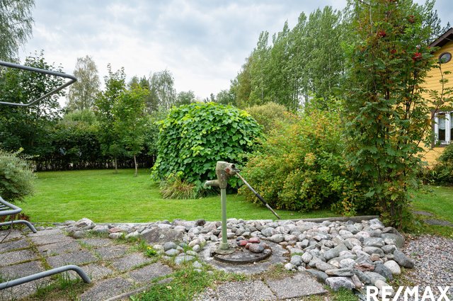 Pihapiiri on todellinen helmi – kuin oma salainen puutarha, jossa vehreys ja runsas kasvillisuus ympäröivät taloa kauniisti. Pihan monipuoliset istutukset ja hyötykasvit tekevät siitä sekä viihtyisän että käytännöllisen: omenapuita, kirsikkapuu sekä puna- ja mustaherukkapensaita tuottavat satoa ja tuovat vuodenkiertoon oman viehätyksensä.