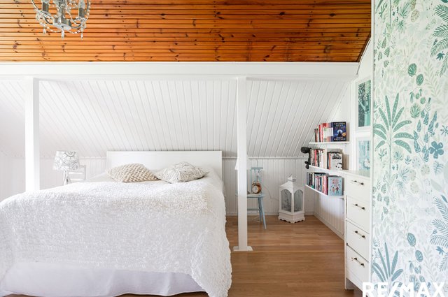 Yläkerrassa on kaksi makuuhuonetta sekä wc.