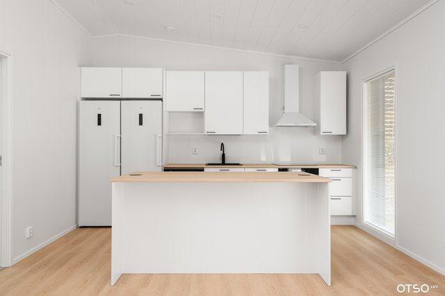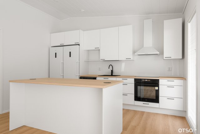 - Jääkaappi, erillinen pakastin, astianpesukone, keittiösaareke, erillisuuni, ja liesituuletin