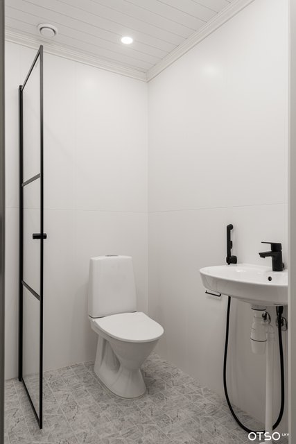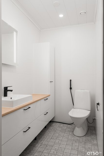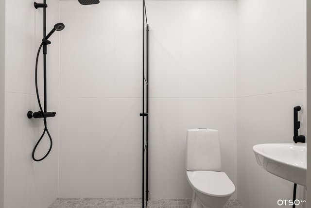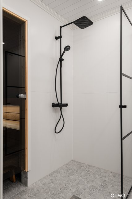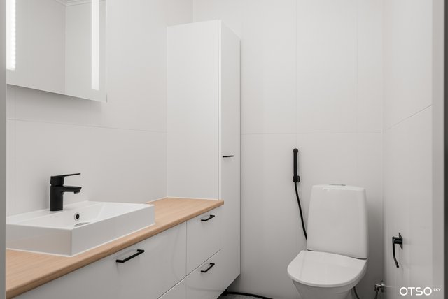 - WC-istuin, suihku, suihkuseinä, lattialämmitys, ja allaskaappi
