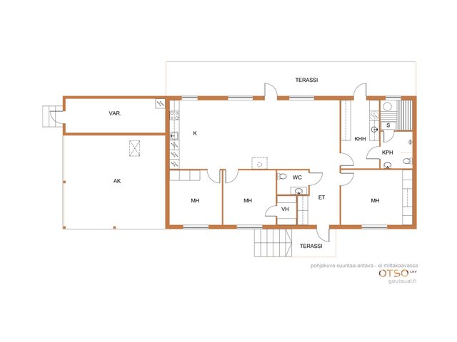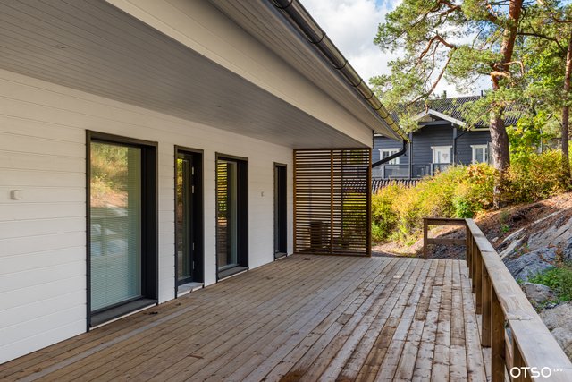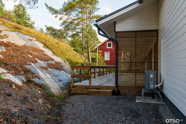 - Koko talon mittainen, katettu, rajautuu kallioon