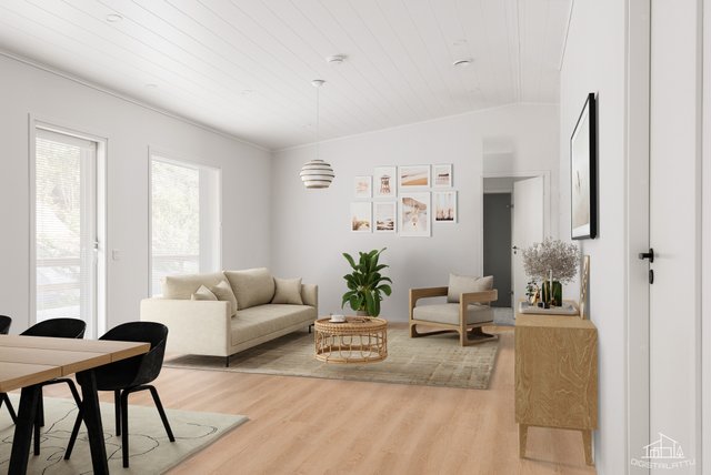 Vaaleat, nykyaikaiset värisävyt ja laadukkaasti rakennettu koti. Lämmitysmuotona energiatehokas vesi-ilmalämpöpumppu.