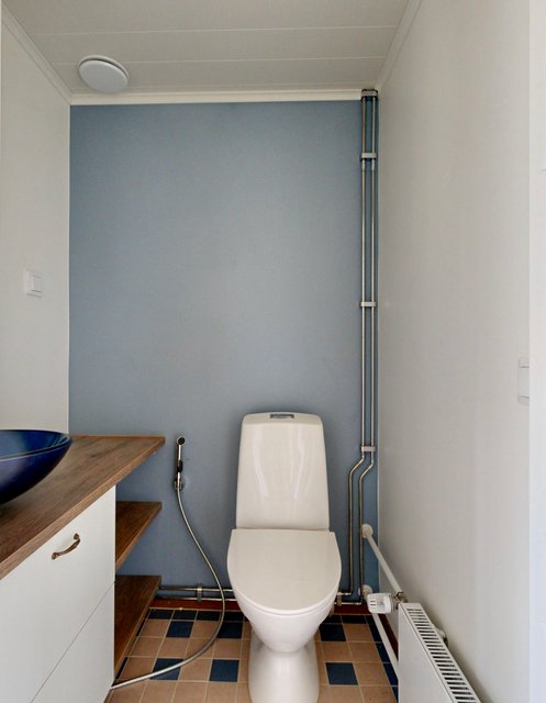 - VARUSTUS: WC-istuin, Allaskaapisto Hana, Peili, SEINÄT: Maalattu. LATTIA: Laatta.