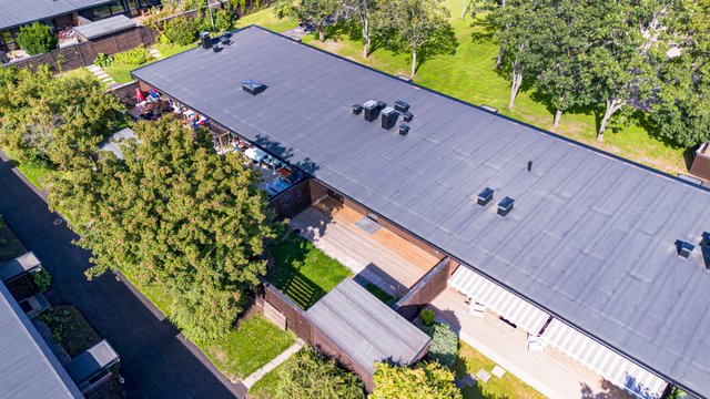-- 2017: Vesikattojen uusiminen ja sisäänkäynnin puoleisten ikkunoiden uusiminen.