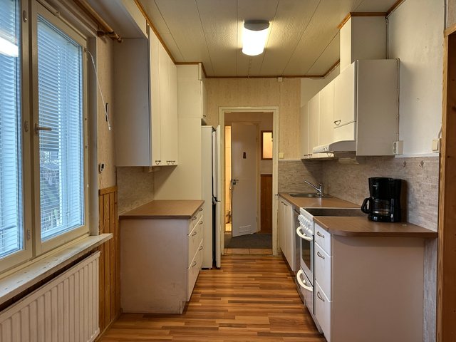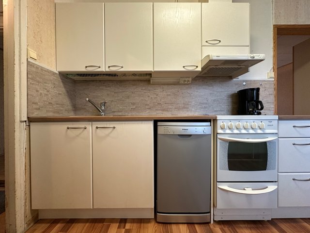 Kodin keittiö on varustettu nykyaikaisilla laitteilla, ja olohuoneessa on laminaattilattia ja tapetoidut seinät jotka luoden viihtyisää tunnelmaa.