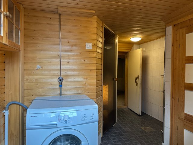 - Alakerran kellaritilassa sijaitsee pesukone, sauna, suihku, sekä erillinen tilava varastohuone.
