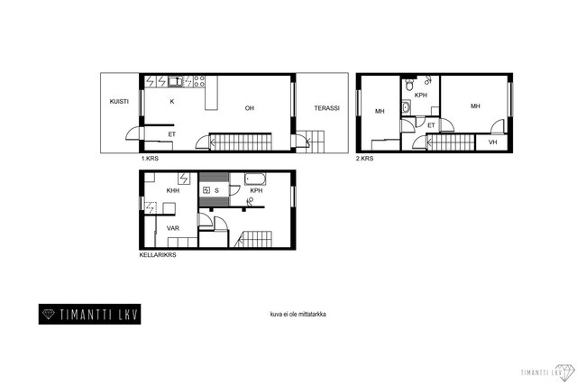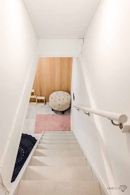 - Huoneistolla on alkuperäisestä tasosta poiketen toteutettu remontoitu kellari kerros, jossa kylpyhuone, sauna ja kodinhoitohuone. Kellarin koko noin 30m2. Kellaritiloja ei lasketa yhtiöjärjestyksessä asuinnelijöiksi.