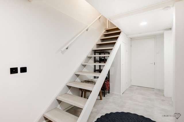 - Kodissa on runsaasti säilytystilaa niin kaapistojen kuin myös vaatehuoneen sekä kellariin toteutetun kodinhoitohuoneen ansiosta.