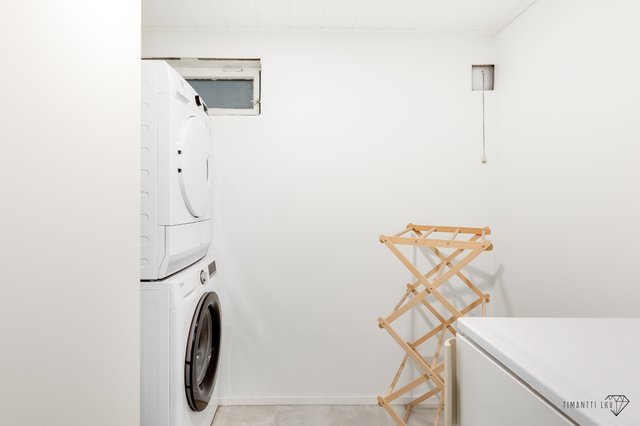 - Kellariin on toteutettu upea kodinhoitohuone, jossa on runsaasti tilaa säilytykselle sekä pyykkihuollolle. Todella toimiva ja monikäyttöinen tila, joka muokattavissa juuri omiin tarpeisiin.