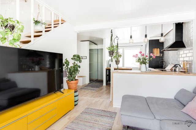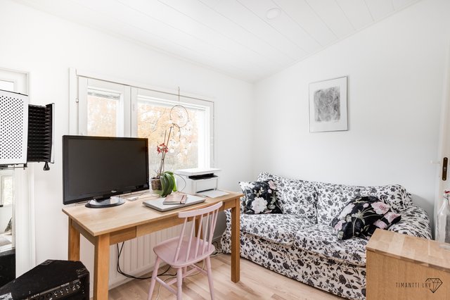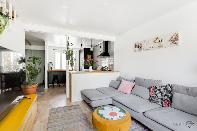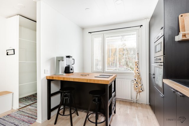 Valoisa ja hiljattain kauttaaltaan remontoitu rivitalokoti Oulun Höyhtyällä tarjoaa loistavat puitteet mukavaan asumiseen. Kodin moderni keittiö hurmaa heti sisään tullessa tyylikkäillä mustilla kaapistoillaan ja puutasoillaan. Olohuone ja keittiö muodostavat avaran ja viihtyisän tilan, josta on käynti takapihan tilavalle terassille. Tämä koti on ihana!