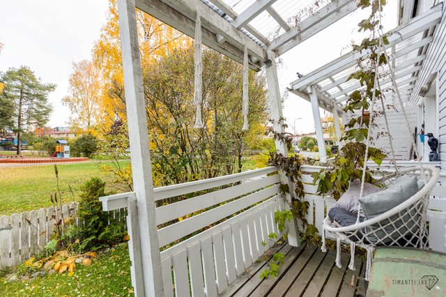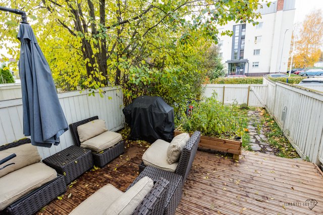 - Takapihan tilava terassi on tehty kesällä 2025, joka mahdollistaa isommankin ruokailuryhmän sijoittamisen terassille sen hyvän koon puolesta.
