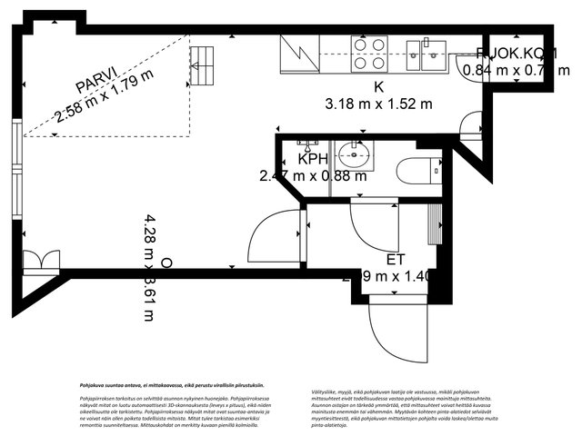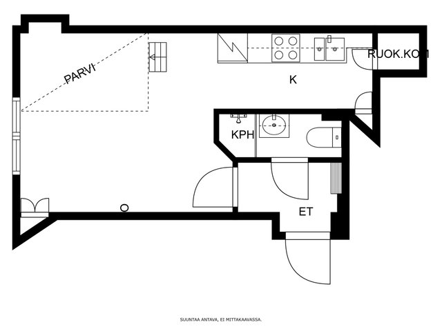 - Tilava n. 4 m2 kokoinen parvi vapauttaa lisätilaa kalustamista varten. Huonekorkeus yli 2,9 m.