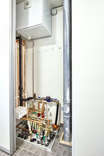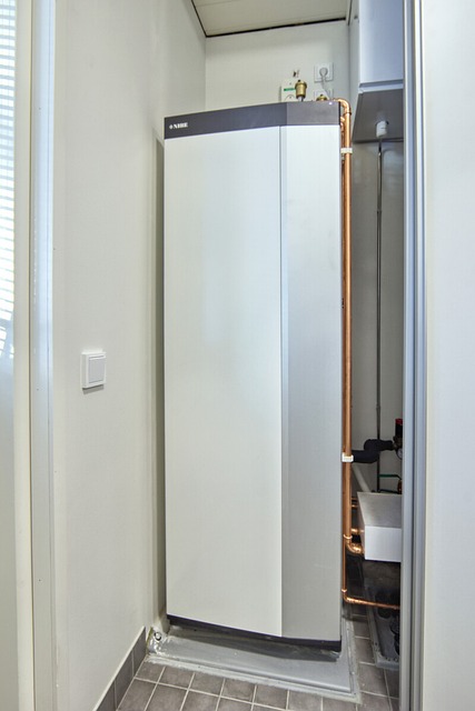 Niben pumppuyksikkö, joka on sijoitettu kodinhoitohuoneessa tekniseen tilaan, liukuovien taakse, lämmittää käyttöveden ja vesikiertoisen lattialämmityksen veden.