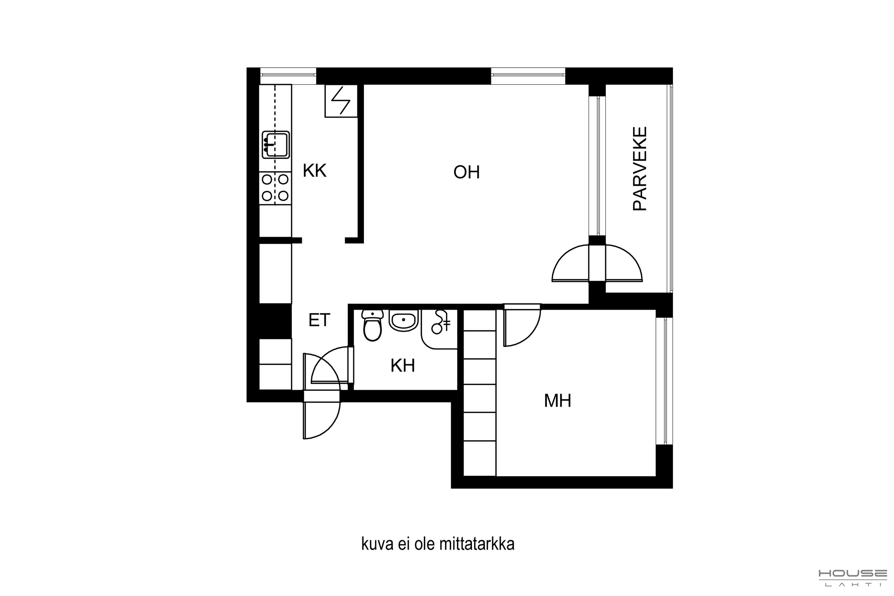 - Ei tarkistusmitattu. Pinta-alat saattavat tämän ikäisissä kohteissa (yhtiö rekisteröity ennen 01.01.1992) poiketa olennaisestikin asuinrakennusten nykyisten mittaustapojen ja standardien (SFS 5139) mukaan laskettavasta asuintilojen pinta-alasta. Pinta-ala voi siis olla edellä mainittua pienempi tai suurempi.