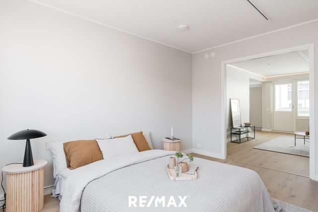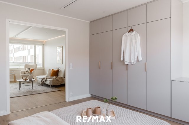 Asunto sijaitsee viidennessä kerroksessa ja on yhdistetty kahdesta asunnosta, mikä tuo tilan tuntua ja monipuolisia mahdollisuuksia sisustukseen.