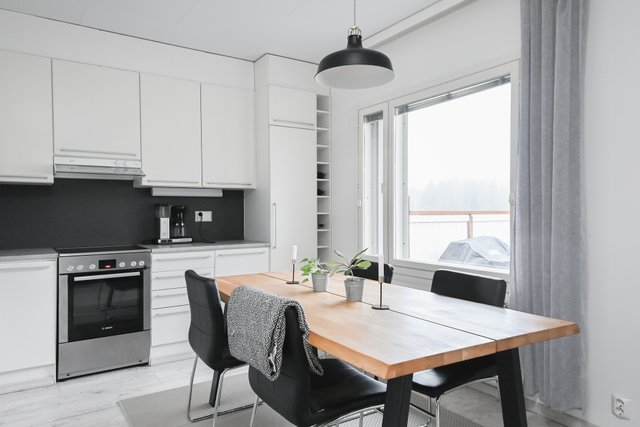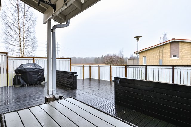 Tämä koti pitää sisällään kaksi tilavaa makuuhuonetta joista toisesta löytyvä vaatehuone lisää mukavasti säilytystilaa tehden arjesta mukavan sujuvaa. Keittiö on tilava, niin lasku- kuin säilytystilaa löytyy riittävästi. Keittiö yhdistyy saumattomasti oleskelutilaan luoden mukavasti tilantuntua. Oleskelutilasta on kulku kodin reilun kokoiselle takaterassille.